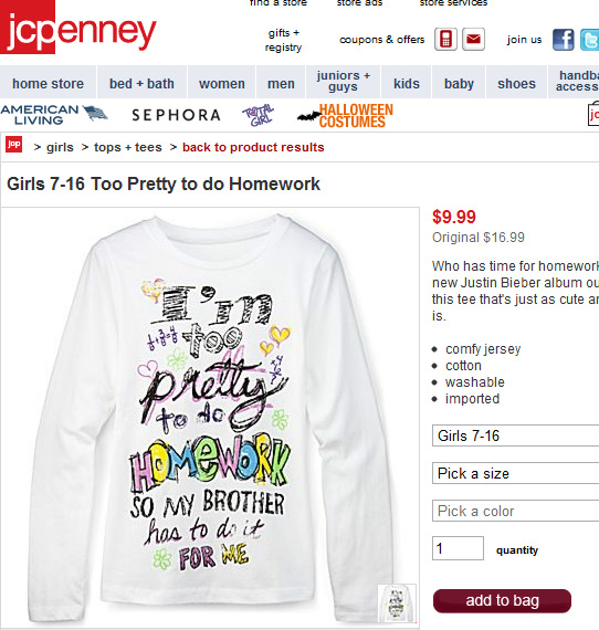 I’m sure I’m not showing anyone anything new when it comes to this infamous shirt, sold for only a few scant hours online at jcpenney.com.